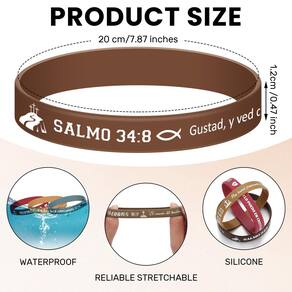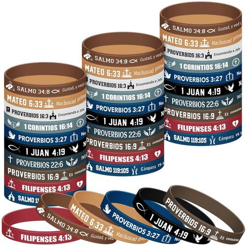 Cada pulseira de silicone cristão exibe palavras e versículos inspiradores da Bíblia espanhola. Projetadas para elevar seu bem-estar emocional, elas promovem uma mentalidade positiva. Use-as, sinta o fluxo de motivação dentro de você e abrace a força em sua fé.