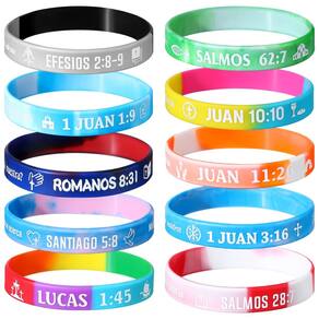 Cada pulseira de silicone cristão exibe palavras e versículos inspiradores da Bíblia espanhola. Projetadas para elevar seu bem-estar emocional, elas promovem uma mentalidade positiva. Use-as, sinta o fluxo de motivação dentro de você e abrace a força em sua fé.