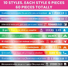 - Enriqueça sua fé: este pacote oferece 60 versículos bíblicos de pulseiras de borracha, incluindo 10 estilos diferentes de versículos da Bíblia em espanhol, 6 peças para cada, oferecendo um conjunto cheio de escolha e variedade, ideal para presentear ou usar sozinho; use-os como um lembrete constante de sua fé e tire energia e positividade dessas mensagens ao longo do dia