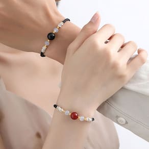 Tamanho: Diâmetro do cordão 6/10 mm Peso: 5g Material: prata 925/ágata natural Ágata e obsidiana — Feito com ágata vermelha genuína e contas de obsidiana preta para promover equilíbrio emocional, coragem e energia fundamental para ambos os parceiros. Conjunto para combinar casais — Projetado como um par com cores contrastantes de miçangas simbolizando yin e yang, perfeito para casais que buscam harmonia e bênçãos compartilhadas. Cordão trançado durável — A corda ajustável tecida à mão oferece um ajuste seguro e confortável para uso diário e é adequada para uma variedade de tamanhos de pulso. Detalhes em prata S925 — espaçadores em prata esterlina polida adicionam um toque refinado e brilho duradouro, aprimorando a elegância geral da pulseira. Design de amuleto Good Luck — Apresenta o simbolismo tradicional do cordão de transferência (zhun yùn zhu), que se acredita atrair boa sorte e energia positiva na vida e nos relacionamentos.