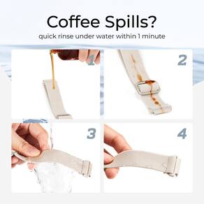 - ?Resistente à água?A inovadora pulseira elástica à prova de respingos para Samsung Galaxy Watch permite que as gotas deslizem, o que faz com que ele lide com suor, chuva leve e até respingos acidentais sem problemas. Para alguns tipos de derramamentos nesta pulseira para Galaxy Watch 7, como café, basta enxaguar rapidamente debaixo d'água em 1 minuto e você receberá uma pulseira limpa