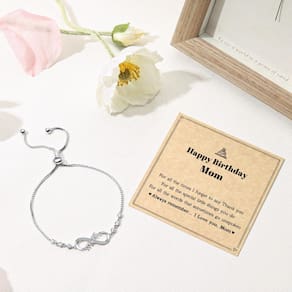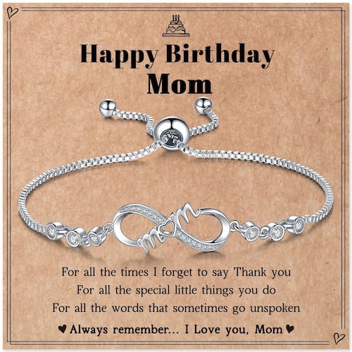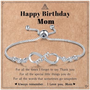 Natal para mulheres - Presentes de aniversário para mãe: as pulseiras Infinity Mom representam o amor sem fim, amor eterno pelas mulheres. - Material: A requintada técnica de polimento das pulseiras banhadas a ouro branco é usada aqui, a zircônia cúbica brilhante é incrustada no símbolo do infinito. - Ajustável: Design deslizante, fácil de ajustar, você pode ajustar facilmente sem qualquer ajuda. Adequado para todos os pulsos, mesmo para pulsos pequenos ou fortes. O processo melhorado não deixará sua pele verde, vermelha ou com coceira. - Presentes para mãe da filha e filho: prefira para o seu amor, mãe, esposa, nova mãe, como presente de aniversário, Natal, Dia dos Namorados, Dia das Mães, surpresa romântica ou qualquer ocasião especial. - Serviço: Valorizamos muito sua experiência de compra, prometemos 180 dias, então se você tiver alguma dúvida, sinta-se à vontade para entrar em contato conosco.