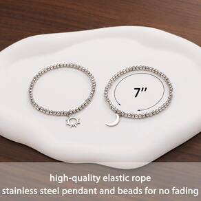 - ?Tamanho?O comprimento da pulseira é de cerca de 18 cm, com corda elástica de alta qualidade, é fácil de usar com uma mão e se encaixa perfeitamente no seu pulso. Vem com corda e contas sobressalentes, então não se preocupe se a pulseira não se ajustar ao seu tamanho.