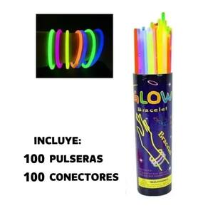 Pacote de divertidas pulseiras fluorescentes, frasco de 100 unidades. Pulseiras fluorescentes luminosas ideais para suas celebrações. Basta dobrá-los e sacudi-los para dar um toque divertido às suas festas. Variedade de cores azul, laranja, rosa, verde, amarelo, roxo e vermelho. Medidas: 26 cm de comprimento. Pesa 280 g o frasco. Conectores incluídos no frasco.
