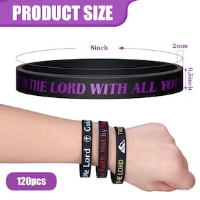 - Material: estas pulseiras inspiradoras são feitas de borracha para garantir que você receba as pulseiras mais resistentes e incríveis de todos os tempos; as pulseiras religiosas de silicone são mais fortes e podem ser aplicadas por um longo tempo, podem misturá-las e fazer com que as pulseiras sejam algo que todos possam usar; essas pulseiras são boas para lembretes diários e assim por diante