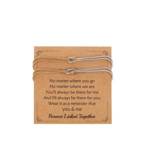 - Perfeito para qualquer relacionamento: seja para um parceiro romântico, um pai, um avô, um irmão ou um melhor amigo, esta pulseira de nó de amor é uma bela maneira de expressar seu amor e apreciação. O cartão incluído diz: "Não importa onde você vá, não importa onde estejamos, você sempre estará lá para mim, e eu sempre estarei lá para você. Use-o como um lembrete de que você e eu estamos sempre ligados juntos."