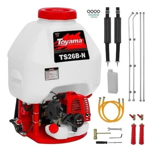 Refrigeração: Refrigerado a Ar Cilindros: Monocilíndrico Tipo do Motor: 2 Tempos Potência Máxima: 1.0 HP Cilindrada: 26 cc Capacidade do Tanque: 0.65 L Rotação Máxima: 6500 RPM Sistema de Partida: Manual Retrátil Capacidade do Tanque de Pulverização: 25 L Vazão: 3~8 l/m Pressão de Trabalho: 15 - 25 kgf/cm² Característica Adicional: Com 2 Lanças Com 4 Bicos Peso líquido: 11 kg Dimensões da embalagem: 460 x 330 x 650 mm