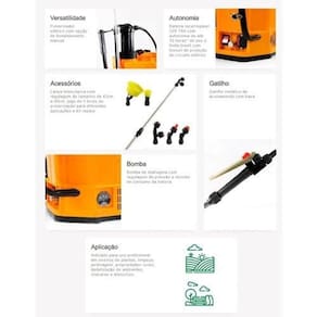 Pulverizador elétrico com opção de bombeamento manual, bomba de diafragma com regulagem de pressão e monitor de consumo da bateria. Indicado para em viveiros de plantas, limpeza, jardinagem, propriedades rurais, dedetização de ambientes, chácaras e domicílios. - especificações técnicas: :: capacidade: 20l :: pressão máxima: 4,5bar / 65,3lbf/pol2 :: bateria: 12v / 8a :: peso: 5,8kg
