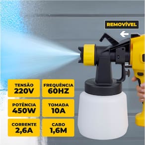 O Pulverizador de Tinta Elétrico 450W é a ferramenta ideal para quem busca praticidade, agilidade e acabamento uniforme em projetos de pintura. Com design moderno e ergonômico, oferece aplicação eficiente e controle preciso do fluxo de tinta.
