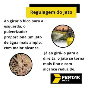 Possui reservatório com acionamento manual e bico ajustável para diferentes formas de pulverização.