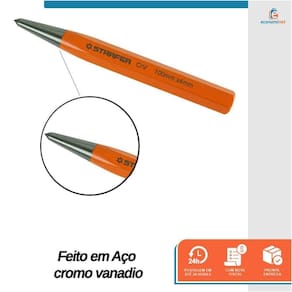 O Punção de Centro Starfer em Cromo Vanádio é uma ferramenta essencial para trabalhos precisos de marcação em metais. Resistente e durável, é ideal para marcar a posição de furos e guiar brocas com maior exatidão, sendo amplamente utilizado em trabalhos profissionais e domésticos.