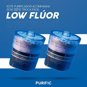 O purificador de água purific 10 da purific é muito versátil, ideal para uso doméstico e comercial para um consumo de água de médio fluxo. Tenha mais conforto e segurança consumindo uma água alcalina de qualidade com um purificador 100% fabricado no brasil. Este purificador acompanha dois refis do modelo purific low flúor troca fácil, que possui sete camadas de proteção e realiza a purificação da água, com as etapas de pré-filtragem, filtragem e o tratamento, além de reduzir o flúor da água. Cada refil/elemento filtrante possui capacidade para purificar 1200 litros de água, trazendo inúmeros benefícios para sua saúde: Possui placa de imãs e infravermelho longo, que atuam na organização das moléculas da água, deixando a água muito mais leve e de fácil absorção pelo organismo; Regula o ph da água ph levemente alcalino ; Reduz o cloro; Reduz de vírus e bactérias, no mínimo 99,99%; Retém partículas; Reduz algas; Reduz fármacos: exemplos: mínimo 80%, mínimo 67%, metformina mínimo 95%, estradiol mínimo 75%, xenoestrogênio mínimo 78%, entre outros ; Reduz metais pesados: exemplos: cobre mínimo 48%, ferro mínimo 94%, cádmio mínimo 91%, níquel mínimo 98%, Cinza mínimo 71%, sulfato de alumínio mínimo 71%, entre outros ; Reduz : exemplos: atrazina mínimo 75%, diuron mínimo 80%, glifosato mínimo 77%, hexazinona mínimo 81%, 2,4 d mínimo 81% , fipronil mínimo 79%, carbendazin mínimo 81%, entre outros ; Reduz trihalometanos, no mínimo 81%. Metodologia: standard methods for the examination of water and wastewater, 2005. Legislações: portaria nº 888 de maio de 2022 - ministério da saúde. Todos os testes e emissão de laudos foram realizados pela uem universidade estadual de maringá Ficha técnica: Capacidade: 10 litros total, entre água a ser purificada e água já purificada . Refil/elemento filtrante: acompanha 2 dois refil/elemento filtrante modelo low flúor troca fácil. Capacidade de purificação: 1.200 litros de água 600 litros para cada refil/elemento filtrante . Abastecimento: manual - pode ser conectado à rede hidráulica utilizando o kit hidráulico purific não incluso com o produto . Para mais informações consulte o manual do produto. Dimensões do aparelho purific 10 de torneira: 41cm de altura x 27cm de largura x 27cm de profundidade Dimensões da embalagem: 45 cm de altura x 30 cm de largura x 31 cm de profundidade Peso: 3,8 quilos - pode ser utilizado com rede hidráulica com o kit hidráulico purific. - produto livre de bisfenol bpa e pp-bip-f - metodologia utilizada: cromatografia gasosa acoplada à espectrometria de massas adaptada da nbr 15176:2004.