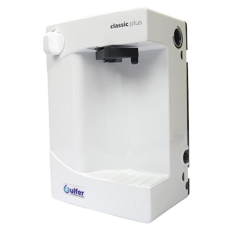 Sistema de retrolavagem, bica de saída de água retrátil, Vazão Nominal: 30 litros / hora, Pressão máx. De operação: 400 kPa, Pressão mín. De operação: 30 kPa, Temp. Máx. De operação: 50 ºC, Temp. Mín. De operação: 5 ºC, Local de Instalação: Ponto de uso POU, Elemento Filtrante: Refil Ulfer Classic Plus, Vida Útil: 5.400 Litros ou 12 meses. Atende a Portaria PRC MS 5:2017.Função retrolavagem