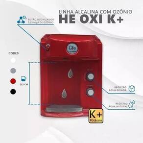 Purificador de água super alcalina ionizada com ozônio e potássio. Voltagem: 127V. Dimensões aproximadas: 29cm (Largura) x 38,6cm (Altura) x 39,4cm (Profundidade). Peso líquido aproximado: 11kg a 12kg.Função retrolavagem