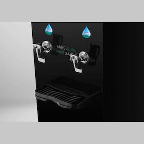 Características Técnicas: Reservatório: 25 Litros Gelado e natural Indicação: Industrial, comercial e residencial Material: Preto Black Piano Brilhante Reservatório: Polipropileno atóxico injetado Serpentina: Aço inox 304 Refrigeração: Gás R134A ecológico Compressor: 1/12 Hp potência Aparador: PP removível para higienização Base: Injetada Eficiência energética: 18 kwh/mês Capacidade de refrigeração: 3,6 l/h gelado (10C) Torneira: Empurra copo Acompanha filtro completo