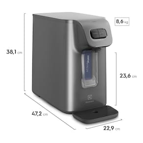 Experimente a pureza e a praticidade com o Purificador de Agua Electrolux PC01X, projetado para atender as suas necessidades diarias de hidratacao com eficiencia e estilo. Com um design moderno na elegante cor grafite, este purificador complementa qualquer ambiente, enquanto suas dimensoes compactas de 22,9x43,4x38,1 cm garantem que ele se encaixe perfeitamente em sua cozinha ou escritorio. Pesando apenas 8,65 Kg, e facil de instalar e reposicionar conforme necessario.