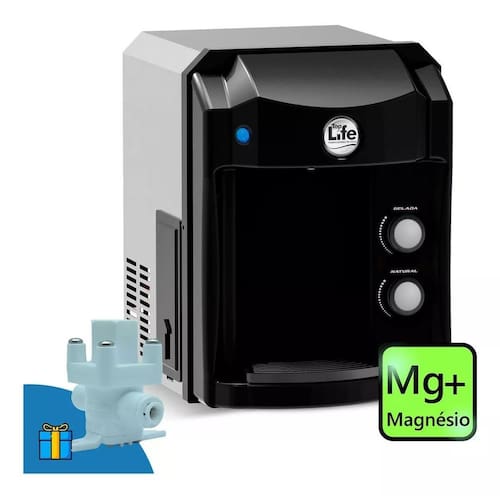 Purificador de água alcalina ionizada ozônio e magnésio mg+ Voltagem: 220v Cor: preto Fonte alcalina purificadores você sabia que o magnésio é um mineral essencial para o funcionamento adequado do nosso organismo Ao optar pelo nosso purificador he oxi mg+ com adição extra de magnésio , você fornecerá ao seu corpo um nutriente valioso, fundamental para a saúde cardiovascular, muscular e nervosa. A água com magnésio é uma maneira simples e saborosa de complementar a ingestão diária desse mineral vital. Além de auxiliar na absorção de outros nutrientes, o magnésio tem sido associado a tais benefícios: 1. Auxilia no funcionamento muscular, 2. Auxilia no funcionamento neuromuscular, 3. Auxilia no metabolismo energético, 4. Auxilia no metabolismo de proteínas, carboidratos e gorduras, 5. Auxilia na formação de ossos e dentes, 6. Auxilia no equilíbrio dos eletrólitos, 7. Auxilia no processo de divisão celular. O purificador he oxi mg+ possui 3 vezes mais água magnesiana que as águas minerais comuns, trazendo mais saúde para sua vida. Características técnicas do purificador: Capacidade de refrigeração: 2,4 litros/hora Eficiência bacteriológica: aprovado Eficiência de retenção de partículas: aprovado Eficiência de redução de cloro livre: aprovado Refrigeração: sim - refrigerado por compressor Consumo de energia: 127v 2,31kwh/mês Consumo de energia: 220v 2,28 kwh/mês Tensão: 127v ou 220v Potência: 100w Amperagem: 0,78 a Frequência - mercado nacional: 60hz : 1 ano Vida útil do refil: 3.000 litros ou 12 meses Uso residencial: sim Uso empresarial: sim Vida útil do produto: 10 anos em média Sem embalagem frente x altura x profundidade cm: 29,0 x 38,6 x 39,4 Com embalagem comprimento x largura x altura cm: 43,5 x 34 x 41 Peso líquido: 11 kg Peso bruto: 12,55 kg Gás refrigerante: r 134 a Vazão máxima: 60 l/h Grau de proteção: ipx0 Eficiência energética: 127 v 0,049kw/l Eficiência energética: 220 v 0,05kw/l Pressão de trabalho: 0,049 mpa a 0,39 mpa de 5 a 40 metros de coluna de água características técnicas da válvula : Material: injetado em abs. Conexão de mangueira entrada 1/4, saída de 1/4 Cor: branca função: - controlar do fluído água para evitar fenômeno golpe de aríete por que devo comprar esse purificador - diferentemente dos demais modelos do mercado, os purificadores de água top life não são feitos de plástico, mas sim de aço, por isso são um bem durável, capazes de resistir por pelo menos uma década de uso contínuo e diário. - o purificador he oxi mg+ da top life não é apenas um filtro, ele é uma super máquina capaz de deixar a água purificada, alcalina com adição extra de magnésio , ionizada, refrigerada e ozonizada. - este purificador pode trazer uma série de benefícios para saúde das famílias, sobretudo por meio da água alcalina rica em magnésio, que auxilia no fortalecimento dos ossos, relaxamento muscular, regulação do humor e auxilia nas enzimas digestivas. - o modelo he oxi mg+ tem um botão que aciona o ozonizador e assim mistura na água o poderoso gás ozônio, importante agente para redução de bactérias e de resíduos de agrotóxicos na superfície de alimentos crus. - todos os modelos de purificadores de água da top life são aprovados pelo inmetro instituto nacional de metrologia, qualidade e tecnologia , sendo assim, tem eficiência e qualidade atesta e comprovada. - melhor relação custo-benefício do brasil: baixo consumo de energia, maior capacidade de fornecimento de água gelada, melhor eficiência energética, redução de cloro livre, retenção de partículas e com eficiência bacteriológica aprovada. Produto altamente qualificado para seu conforto e qualidade de vida. - menor consumo de energia elétrica seja para residência ou comércio, isso porque o motor compressor do aparelho atua com maior eficiência energética, destacando entre os mais econômicos do mercado.