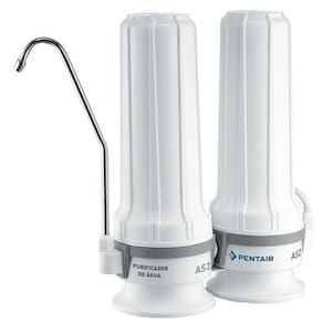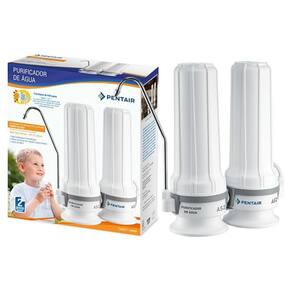 Purificador de água portátil Pentair AS2 com dois estágios de filtragem, instalação fácil em torneiras com rosca, não utiliza energia elétrica, acompanha adaptador e chave para filtro.Função retrolavagem