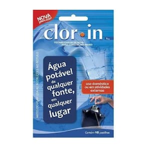 Purificador de Água Clorin 10 Pastilhas!!Ideal para garantir a qualidade da água consumida e expulsar bactérias que podem atrair doenças!ESPECIFICAÇÕES:-Pode ser utilizado em uso doméstico e em outras atividades externas;-Contém 10 pastilhas;-Uma pastilha é capaz de purificar de 500ml a 1 Litro de água;-Indicado aguardar 15 minutos antes de consumir;-Possui teor ativo de cloro de 1%;-Não é prejudicial a saúde;-Ideal para purificar águas de rios, riachos, chuva e poços;-Não altera odor, sabor ou cor da água a ser consumida;-Produto aprovado pela Organização Mundial da Saúde;ADQUIRA JÁ O SEU!