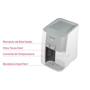 - Purificador de Água Colormaq Pro - Tipo: Purificador por Compressor - Tipo de Água: Natural e Gelada - Níveis de Temperatura: 6 - Capacidade de Água Gelada: 2,3 L - Dimensões (AxLxP): 44,9 x 30,5 x 42,3 cm - Peso: 9,6 kgFunção retrolavagem