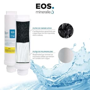 -Filtro de carvão ativo com sistema troca-fácil: água tratada, livre de impurezas, cor, sabor, odor, cloro, além de reter bactérias.