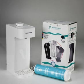 Composto de ABS de alto impacto, possui válvula de cerâmica que evita gotejamento e garante durabilidade de até 200 mil acionamentos. Além disso, conta com acionador de água com proteção antimicrobiana, que repele vírus e bactérias como os da herpes, por exemplo. É ideal para qualquer ambiente, desde que seja instalado em local com até 1,5 m de distância de um ponto de água, na parede ou sobre a bancada da pia. Indicado para quem busca um sistema completo de purificação de água em um único produto.