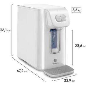 descubra a praticidade e eficiência do Purificador de Água Electrolux PC01B. Com design compacto e elegante na cor branca, este purificador se adequa perfeitamente a qualquer ambiente, seja em casa ou no escritório. Seu tamanho é de 22,9x43,4x38,1 cm e pesa 8,65 Kg, tornando-o um produto fácil de instalar e manusear. Acompanha embalagem tipo caixa com dimensões de 42,2x31,3x47 cm e peso total de 10,03 Kg, que contém o purificador e o manual de instruções. Este purificador de água fornece água fria, natural e gelada, graças ao seu sistema de refrigeração por compressor. A potência de 1 W e a tensão elétrica de 127V garantem um funcionamento eficiente. Com capacidade de 1,7 L e capacidade de refrigeração de 1,20 L/h, este purificador é ideal para uso contínuo. O consumo de energia é de 12,59 kWh/mês, tornando-o um produto econômico e sustentável. Além disso, conta com LED indicativo para troca de refil, garantindo sempre a melhor qualidade da água. O Purificador de Água Electrolux PC01B está ligado à rede de água e tem capacidade de redução de cloro livre. A pressão de funcionamento varia de 4,00 a 40,00 mca, adequando-se a diferentes necessidades. Além disso, o filtro com carvão ativado com íons de prata reduz o excesso de cloro na água e inibe o desenvolvimento de bactérias, além de reduzir odores e sabores. O filtro possui uma barreira de polipropileno que filtra as impurezas sólidas. Este purificador é regulamentado pelo Inmetro e tem do fabricante de 12 meses, proporcionando tranquilidade e confiança na sua compra. Resumo das especificações: - Modelo: PC01B - Marca: Electrolux - Temperatura da Água: Fria, Natural e Gelada - Alimentação: Elétrica - Tensão Elétrica: 127V  110V  - Potência: 1 W - Capacidade: 1.7 L - Sistema de Refrigeração: Compressor - Capacidade de Refrigeração: 1,20 L/h - Consumo de Energia: 12,59 kWh/mês - Produto Ligado à Rede de Água: Sim - Redução de Cloro Livre: Sim - LED Indicativo para Troca de Refil: Sim - Pressão de Funcionamento: 4,00 a 40,00 mca - Cor: Branco - Peso do Produto: 8,65 Kg - Dimensão: 22,9x43,4x38,1 cm - Produto Acompanha Embalagem: Sim - Dimensão da Embalagem: