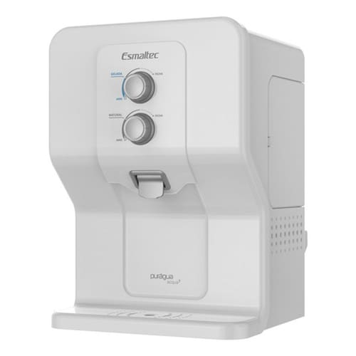 Purificador de água Esmaltec Acqua7, refrigeração por compressor, vazão de 0,75 litros por minuto, filtro de carvão ativado e polipropileno, ideal para uso doméstico e comercial.Função retrolavagem