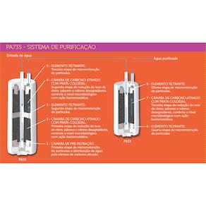 - INMETRO P-I / C-I: Máxima classificação em purificação da água e remoção de cloro - Preserva o flúor para a saúde bucal - Bacteriostático: câmara de carbono ativado com prata coloidal realiza o controle microbiológico, impedindo a proliferação de algas e bactérias - Painel com LCD: Tecnologia digital com indicação da temperatura da água e indicação de uso dos filtros - Tecnologia PureBlue - Garantia de água pura: Avisa quando os filtros precisam ser trocados - Maior economia: Purifica até 7.000 litros de água, o equivalente a 350 galões de 20 litros <strong>E mais:</strong> - 3 Teclas soft touch para água natural, misturada e refrigerada; com fluxo contínuo ou controlado - Filtros super fáceis de trocar com conexões automáticas - Bica móvel: Jato de água direcionável (enche jarras e garrafas) - Água refrigerada a menos de 10°C - “Bivolt automático”: sistema de voltagem inteligente, de 100V a 240V - Sistema hidráulico hermético, “blindado” contra contaminações (insetos, poeira, etc.) - Design moderno, inovador e super prático - Controle inteligente de temperatura da água de baixo consumo de energia - Volume do reservatório de água refrigerada: 2,1 litros - Eletroválvula: Proteção contra vazamentos - Fluxo contínuo de água natural para cozinhar e lavar alimentos - 100% ecológico (não utiliza gás) - Suporte de parede incorporado ao produto - Baixo nível de ruído, sem vibrações - Indicado para uso doméstico - Água: Natural, resfriada e misturadaTipo de água
