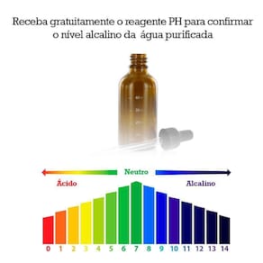 Esse Purificador de água transforma a água comum da torneira em água alcalina com pH entre 8,5 e 9,5.