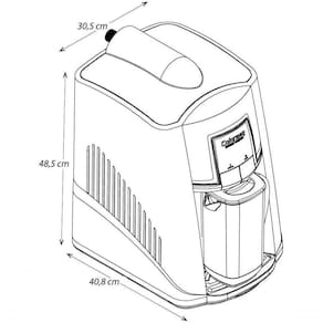 Modelo Voltagem (V) Sistema de refrigeração Troca de filtro Vida útil filtro Volume de água gelada (L) Instalação Dimensões do produto (LxAxP cm) Peso líquido (Kg) Dimensões com embalagem (LxAxP cm) Peso bruto (Kg) Cubagem (m3) Premium 127 / 220 Compressor Sim 6 meses ou 4 mil litros 2,3L Bancada 29 x 49 x 42,5 10,2 30 x 54 x 45 11 0,077 NA | Cor: BRANCO | Voltagem: 220 V
