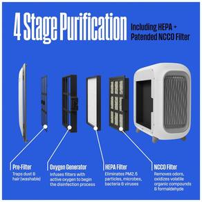 COBERTURA O WH50P filtra e purifica o ar em espaços de tamanho médio até 27 metros quadrados. FILTRAÇÃO DE 5 ESTÁGIOS O ar é purificado através de um processo de filtragem de cinco estágios, incluindo um pré filtro, filtro estático, gerador de oxigênio ativo, um filtro HEPA e, finalmente, um reator NCCO. QUIETO O Westinghouse WH50P fornece filtragem de ar de qualidade sem muito ruído. Apenas 37dB na configuração mais baixa. ALERGENS COMBATOS O WH50P aborda alérgenos nocivos até 14h5, incluindo fumaça, pelos de animais, poeira e mofo e desodoriza no processo. REMOTE suporta Wi Fi e controle por aplicativos Marca: Não Informado