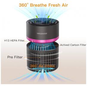 Aerodinâmica atualizada Com um ventilador DC projetado internamente pela Megawise. Este EPI810 atualizado empurra 210 mais fluxo de ar do que a versão mais antiga e a maioria dos purificadores de tamanho semelhante.