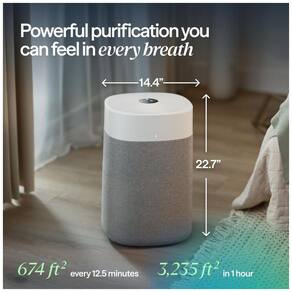 MARCA DE PURIFICADOR AÉREO MAIS PRONTÁVEL NOS EUA linha de purificador de ar no 1 da Blueair A nova série Pure Max da família azul com nosso desempenho HEPASilent proprietário agora ainda melhor com até 83 limpeza mais rápida e 50 menos ruído Vamos limpar o quarto de calibre marca silenciosa certificada 23 53dB Limpa a sala extra grande de 58 metros quadrados em cerca de 12,5 minutos ou até 141 metros quadrados de espaço XL em 30 minutos, em alta Vamos limpar o ar mais rápido a tecnologia de filtragem dupla HEPASilent fornece mais ar limpo mais rapidamente e usa menos ruído e energia do que a filtragem HEPA sozinha Vamos limpar o ar melhor remove pelo menos 99,97 das pequenas partículas transportadas pelo ar, como vírus, e fumam até 0,1 mícrons, e captura pêlos, pólen, alérgenos de mofo e poeira filtro de carbono retém odores domésticos leves de fumar, animais de estimação e cozinhar Vamos limpar o aparelho mais inteligente aplicativo Smart Air Purifier ativado e controle de voz disponível Os recursos incluem Clean Air ETA, monitoramento de filtro RealTrack e Welcome Home LIMPE O EASIER DO AR Visor intuitivo de LED, sensor de poluição em tempo real PM1, PM2.5 e PM10 com AQI de 5 cores e design simples de dois botões facilitam Controle as velocidades do ventilador 1, Modo 2, 3, 4 ou noite, modo automático ou ajuste os níveis de luz e bloqueio infantil.