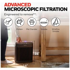 O console Honeywell HPA5100 da Série InSight HEPA Air Purifier ajuda a fornecer ar mais limpo e fresco em ambientes médios e grandes. Com filtração HEPA, que captura até 99,97% de alérgenos e partículas como poeira, pólen, pelos de animais, ácaros e fumaça. Este purificador de ar da Honeywell pode filtrar e circular o ar a cada 12,5 minutos, eliminando odores e partículas nocivas. Além disso, inclui um Display InSight que ilumina para mostrar os 4 níveis de limpeza, um timer automático de desligamento em 2, 4 ou 8 horas, e opção de ajuste de brilho para as luzes do painel de controle. Parte da Série InSight, este purificador de ar Honeywell ganhou a certificação ENERGY STAR por sua eficiência energética. Recomenda-se sempre adquirir filtros de reposição genuínos da Honeywell para garantir a captura eficaz de odores e alérgenos microscópicos. Esteja preparado para substituir os filtros True HEPA R 1 vez por ano e o Pré-Filtro Redutor de Odores 4 vezes por ano.