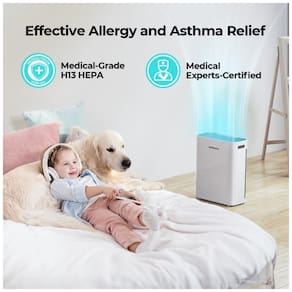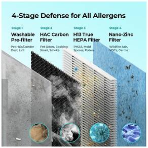 O purificador de ar inteligente Homvana H211S é uma escolha poderosa para salas de até 379,94 metros. Com um CADR de pico de 142 CFM, ele limpa o ar em 82,07 metros em 12 minutos, 196,05 metros em 30 minutos e 379,94 metros em 60 minutos. O filtro HEPA verdadeiro de 4 estágios H13 ajuda pessoas com asma e alergias, capturando 99,97 contaminantes transportados pelo ar de 0,1 mícron, como poeira, pólen, fumaça e pêlos de animais, etc. O sensor infravermelho avançado permite que você veja a qualidade do ar em tempo real e como o ar melhora através dos indicadores distintos ou do aplicativo Homvana. O modo de suspensão Homvana é tão silencioso quanto 22,0 DB, ainda mais silencioso que um sussurro, permitindo que você desfrute de um sono tranquilo.