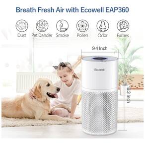 Os purificadores de ar ECOWELL modelo EAP360 são ideais para salas grandes, cobrindo até 152m2. Com uma taxa de entrega de ar limpo (CADR) de 360 metros cúbicos por hora (212 CFM), este purificador é perfeito para salas de estar, quartos e casas amplas, purificando o ar em ambientes de 24m2 a 43m2 até cinco vezes por hora. É especialmente benéfico para pessoas sensíveis à qualidade do ar, removendo poeira, pólen, fumaça, mofo, pelos de animais e odores.