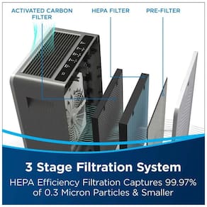 Cada compra salva animais de estimação. A Bissell orgulhosamente apóia a Bissell Pet Foundation e sua missão de ajudar a salvar animais de estimação sem teto Filtração de 3 estágios. Inclui um pré filtro, um filtro de carvão ativado e um filtro HEPA que captura 99,97 de partículas de 0,3 mícron e menores, incluindo pólen, poeira, fumaça, cabelo e pêlos de animais Filtro de estrutura de favo de mel. O filtro de carvão ativado tem um design exclusivo em forma de favo de mel preenchido com pellets de carbono para melhor eficiência de gases e VOCs, bem como odores de cozinha, animais de estimação, fumaça e muito mais sistema automatizado CirQulate. Utiliza um sensor PM 2.5 para monitorar, relatar e responder às mudanças na qualidade do ar interno, ajustando a velocidade do ventilador conforme necessário Filtros incluídos. Vem com um filtro HEPA pré filtro e um filtro de carbono tamanho adequado. Move o volume de ar equivalente a uma sala de 111 metros quadrados 1,5 vez a cada hora, tornando o ótimo para quartos, áreas de estar, porões e salas de jantar