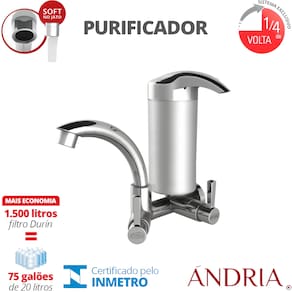 ? TORNEIRA COM PURIFICADOR – LINHA ÁNDRIA ? A Torneira com Purificador é ideal para quem busca água mais pura e segura no dia a dia. Com carvão ativado e prata, elimina cheiros, gostos indesejados e reduz impurezas como areia, barro e ferrugem. Perfeita para cozinhas, garantindo água mais cristalina e de melhor sabor para o consumo. 💧?