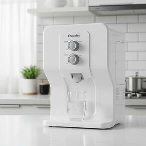 Purificador de água com sistema de refrigeração por compressor, oferece água nas temperaturas natural e gelada. Possui redução de cloro livre e retentão de partículas Classe C. Utiliza refil com vida útil de até 3000 litros ou 6 meses.Bica móvel