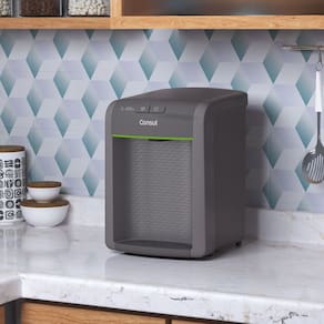 Descubra a excelencia em purificacao de agua com o Purificador de Agua Consul CPB34AF, projetado para oferecer agua natural e gelada com maxima eficiencia. Com um design moderno na cor cinza, este purificador se integra perfeitamente a qualquer ambiente, proporcionando nao apenas funcionalidade, mas tambem um toque de sofisticacao. Compacto e eficiente, suas dimensoes de 37,6x26,1x29 cm e peso de 4,50 kg garantem facil instalacao e manuseio. Equipado com um sistema de refrigeracao por placa eletronica, o purificador Consul CPB34AF oferece uma capacidade de refrigeracao de 0,20 L/h, ideal para atender as necessidades diarias de uma familia. A tecnologia de filtracao P1/C1 assegura a retencao de particulas Classe A, enquanto a eficiencia bacteriologica e a reducao de cloro livre garantem agua pura e saudavel. O LED indicativo para troca de refil e um diferencial que facilita a manutencao, assegurando sempre a melhor qualidade de agua. Compativel com refis CPB34AF, CIX06AX0NA, W10901034 e W11199342, a vida util de 1500L ou 6 meses e otimizada para um consumo consciente. Este purificador e bivolt, adaptando-se a diferentes instalacoes eletricas e consumindo apenas 7,00 kWh/mes, o que representa economia e sustentabilidade. Ideal para residencias que valorizam saude e praticidade, o purificador e a escolha certa para quem busca qualidade de vida. Com garantia de 12 meses, oferece tranquilidade e seguranca. Resumo das caracteristicas: Agua natural e gelada; Sistema de refrigeracao: Placa eletronica; Capacidade de refrigeracao: 0,20 L/h; Consumo de energia: 7,00 kWh/mes; Modo de filtracao: P1/C1; Retencao de particulas: Classe A; Eficiencia bacteriologica e reducao de cloro livre; LED indicativo para troca de refil; Vida util: 1500L ou 6 meses; Compativel com refis CPB34AF, CIX06AX0NA, W10901034, W11199342; Cor: Cinza; Dimensoes: 37,6x26,1x29 cm; Peso: 4,50 kg; Garantia: 12 meses.