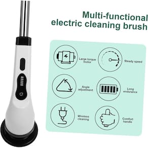Purificador giratório elétrico sem fio 9 cabeças de limpeza de reposição à prova d'água escova de limpeza Especificação: Material do produto: ABS Tamanho do produto: 25 x 20cm / 9,84 x 7,87in Haste telescópica: 65,5cm / 25,79in Bateria: 2000mAh embutida Tempo de carregamento: cerca de 3h Tempo de trabalho: 30-50min Velocidade: 2 marchas Potência nominal: 25W Frequência nominal: 50Hz Grau à prova d'água: IPX6 Cabeça da escova: Opcional 6pcs escova redonda grande, escova pontiaguda, escova de lã curta, escova de polimento macia, escova de fibra grossa, escova de esponja 9 unidades escova redonda grande, escova redonda pequena, escova pontiaguda, escova semicírculo, escova de polimento macia, escova de fibra grossa, escova de esponja, escova de lã curta, escova de pano de lã