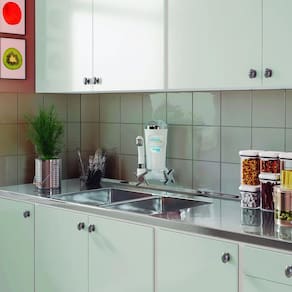 Purificador de água com design moderno, ideal para cozinhas. Possui alta qualidade e resistência, com jato suave e sem respingos. Acompanha refil com vida útil aproximada de 1500 litros.Função retrolavagem