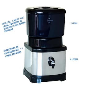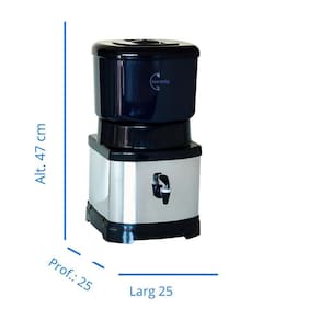 Com medidas de largura de 25cm, profundidade de 25cm e altura de 49cm, este purificador possui um fluxo de filtragem de 1,1L/H e uma capacidade total de 7 litros. Além disso, ele substitui o galão de água mineral, oferecendo economia e praticidade no dia a dia.
