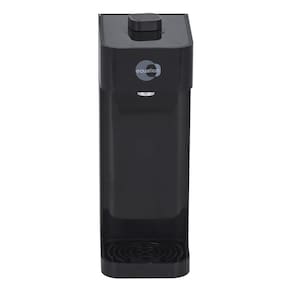 Purificador de água com design moderno na cor preta. Opera sem energia elétrica, utilizando sistema de filtragem por pressão. Retém partículas de Classe C e reduz cloro livre. Refil compatível JOE C3 com vida útil de 12 meses. Não possui eficiência bacteriológica.Função retrolavagem