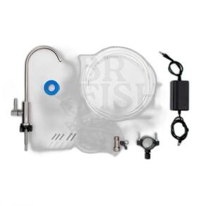 Purificador com tecnologia de osmose reversa, retém partículas maiores que 0,0001 mícron, luz indicadora de troca de filtro, torneira de bancada em aço inox 304.