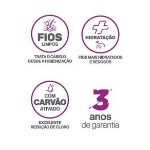 PURIFICADORPURE9 CABELOS Código: 2018Produto evita a agressão do cloro no couro cabeludo, aumenta a durabilidade da coloração e dos tratamentos aplicados nos cabelos. Para os fios virgens, o brilho e sedosidade poderão ser sentidos ainda mais, proporcionando uma hidratação de ponta a ponta. Tudo isso em 3 etapas de filtragem.Características TécnicasVida útil: 4.000 litros (6 a 9 meses)Vazão máxima: 60 litros/horaVazão nominal: 60 litros/horaRetenção de partículas: Classe F (= 50 a < 80µm)Com redução de cloro livreAparelho, Refil por Pressão | Pressão de Operação: 39,3 a 588 kPaTemperatura de operação: 1 a 45 °CDimensões aprox.: 296x102x67mmPeso aprox.: 0,589 KgTecnologia empregada: Base de Polipropileno, Refil de Polipropileno, Polipropileno Meltblown e Carvão Ativado com Nanopartículas de Prata ColoidalAplicação: POU - Ponto de uso