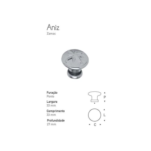 Principais Características: - Puxador Aniz Niquel Escovado Gruppa - Acabamento em níquel escovado - Design moderno e elegante - Furação no formato de ponto - Largura: 33mm - Comprimento: 33mm - Profundidade: 27mm - Fácil de instalar - Ideal para portas e gavetas - Resistente e durável