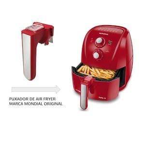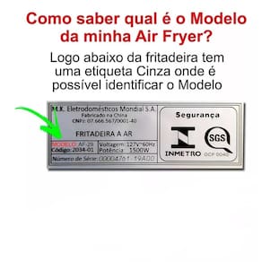 Atenção: Para saber o modelo exato de sua fritadeira air fryer mondial, basta verificar o campo modelo que fica no selo cinza logo abaixo de sua fritadeira.