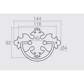 Descriçãopuxador alça de baúpuxador com designe colonial, ideal para móveis rústicos. Fixação pela frente que facilita a instalação do puxador. Pode ser utilizado também em baús e caixotesdescrição técnica:material: açocomprimento total: 144mmfuração horizontal : 109mmaltura total: 92mmfuração vertical : 84mmdiametro do furo: 04mmespessura chapa: 1,2mm Marca: Component